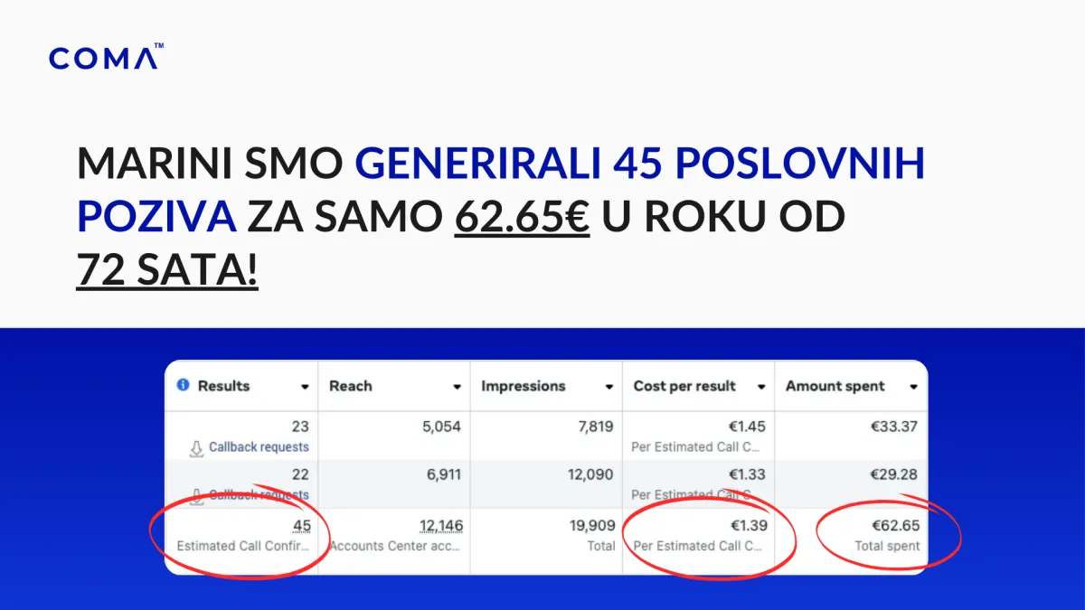 ✅ Prvi rezultati već unutar 72 sata od pokretanja kampanje